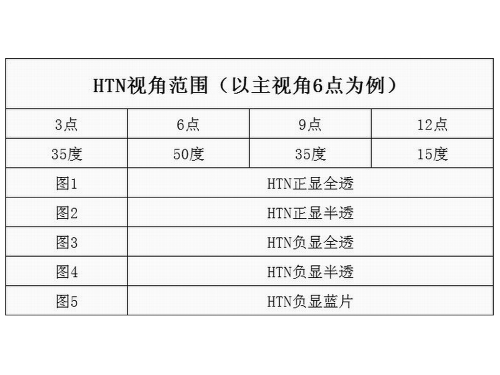 8;特性:HTN顯示比TN顯示視角范圍要寬一些,可調電壓范圍也比TN顯示寬,價格也比TN顯示略高。適用于要求稍高TN顯示無法滿足,但是價格又不能比TN顯示相差太大的電子產品上。HTN正顯為白底黑字,字體帶少少泛白,HTN負顯為藍底白字,藍色帶點紫紅色。